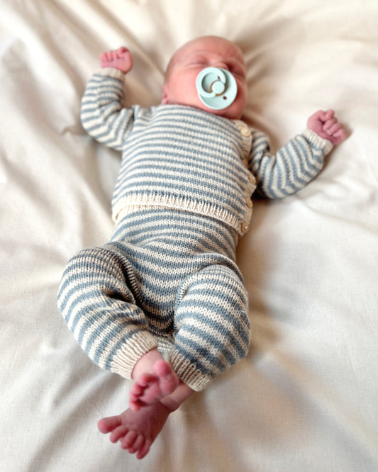 NÄ er vi selv smÄbarnsmÞdre og Þnsker Ä designe egne strikkeoppskrifter med den erfaringen vi har gjort oss som foreldre om hvilke type plagg, passformer og detaljer som fungerer best. Vi er opptatt av Ä lage strikkeplagg med god og romslig passform, gjerne striper og hullstrikk, og plagg som fungerer godt til lekne babyer og smÄbarn.