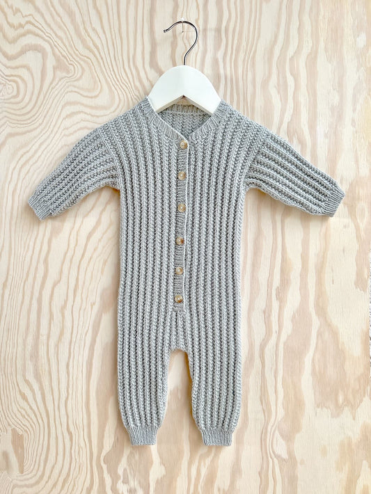 Vi har lenge grublet over et raskstrikket enkelt babyplagg, pÄ litt tykkere pinner enn vi vanligvis bruker. Dette skal bli en "go-to-babyjakke" som man raskt kan strikke i barselgave.