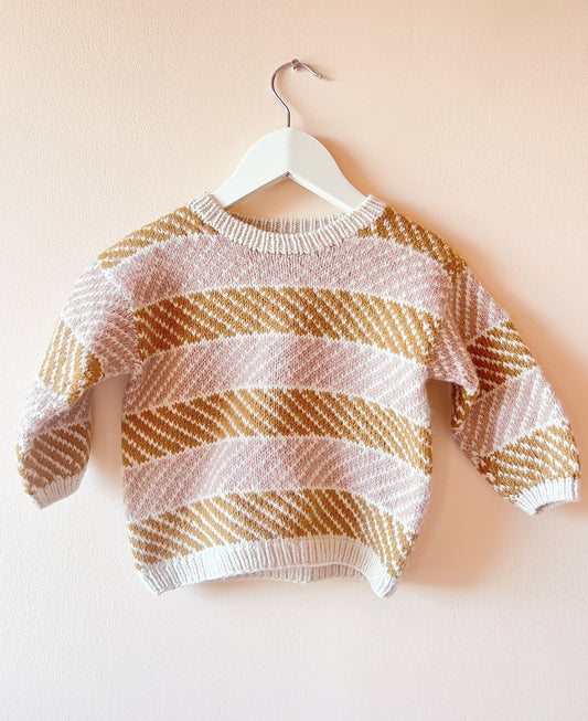 Tidi genser er en genser som er perfekt i basis-garderoben. Den har en deilig passform med skrÄ skuldre og opplukkede masker til ermer. Genseren kommer i stÞrrelse 6 mnd til 8 Är. Vi hÄper Ä ha den klar til teststrikk fÞr pÄske!