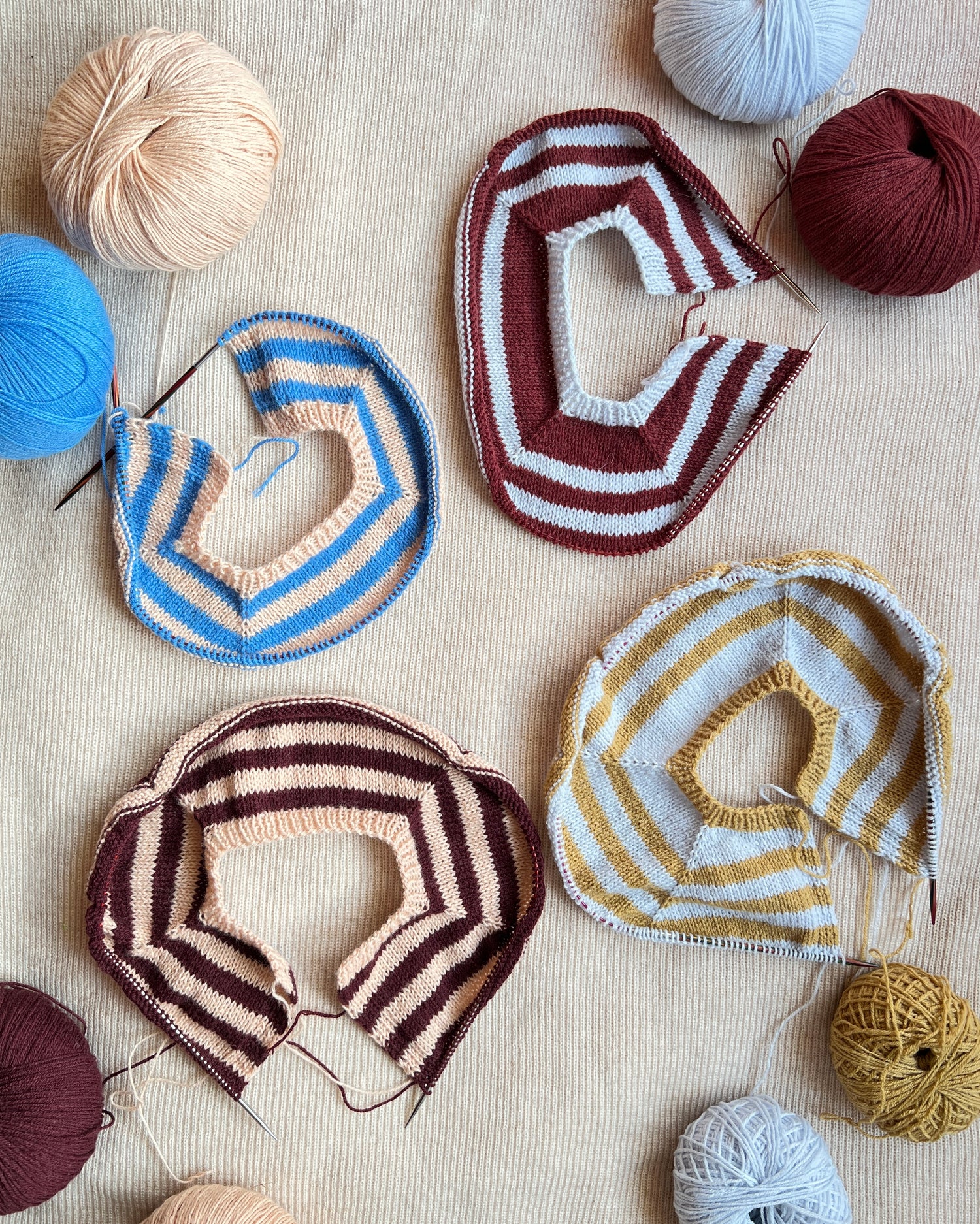 In Bergen, there are many narrow alleyways and passages – just like the stripes in the Smau series. These garments can be knitted without a measuring tape, simply by counting full stripes. We’re planning to develop a jacket, onesie, balaclava, and dungarees – in different gauges!