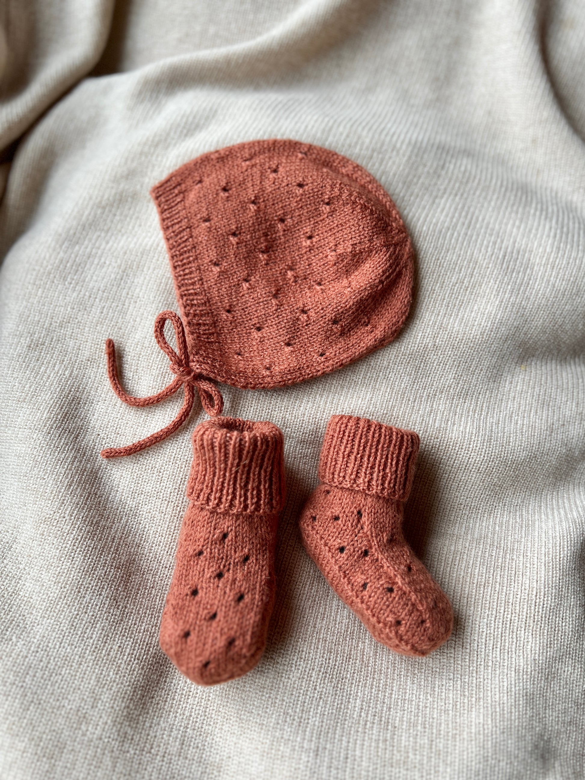 Fordi mønsteret gjør kysen både lun og luftig - passer den like godt hele året, både til sommer- og vinterbabyer, gutt og jente.