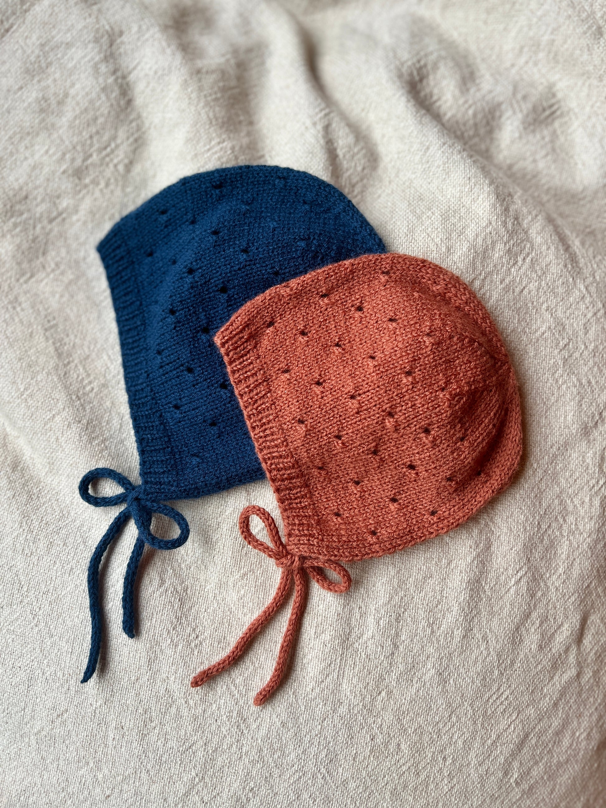 Kysen strikkes med vrangbord fra pannen, og bakover i glattstrikk med enkle hull. Til slutt felles det av rundt på bakhodet. Det strikkes I-cordsnorer til knyting. Kysen er inkludert i oppskriften til Regndråpe hentesett.